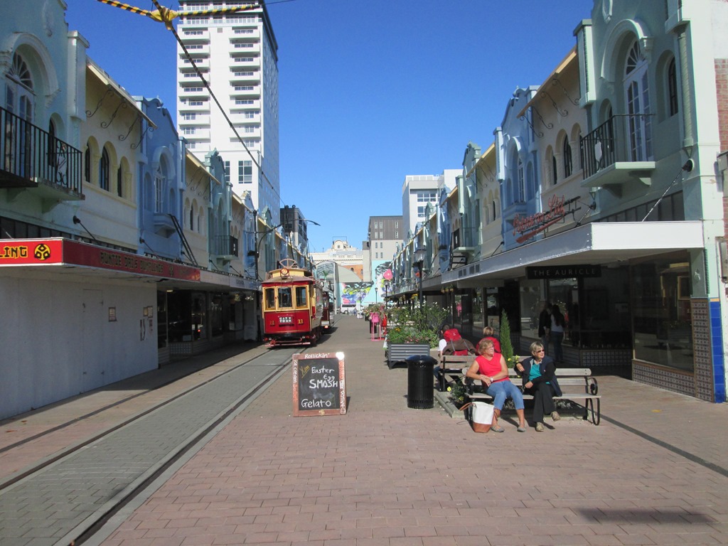 Nach einer Runde Pfannekuchen zum Frühstück machen wir uns auf, um Christchurch zu erkunden. Christchurch wurde ja vor 3 Jahren von zwei üblen Erdbeben heimgesucht, sodass in den letzten Jahren die Innenstadt sogar komplett gesperrt war. Eine der Dinge, auf die die Leute hier sehr stolz sind, dass sie wieder laufen, ist die Tram. Die nutzen wir dann auch mal um uns durch die Innenstadt kutschieren zu lassen, denn seit letztem Jahr ist diese nicht mehr gesperrt.