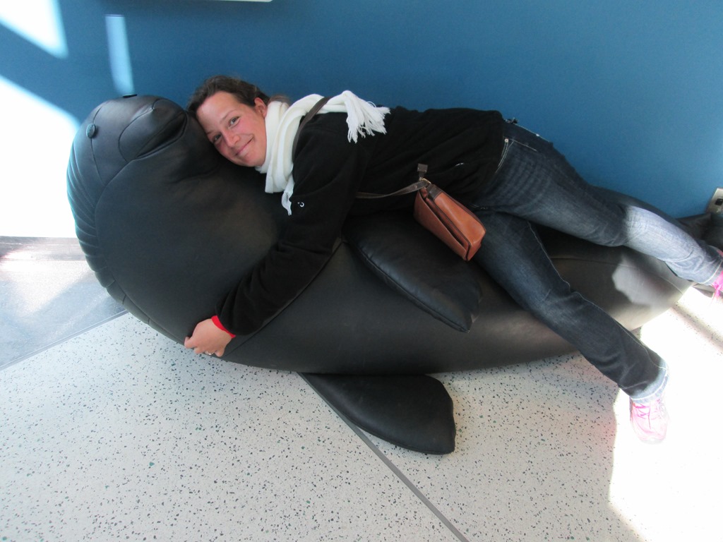 Dann heißt es Goodbye Penguins! Noch ein kurzer Stopp auf einer gepolsterten Sitz-Robbe und im Souvenirshop und schon sind wir raus aus dem Antarctic Center. Langweilig war es nicht und es ist jetzt auch schon Nachmittag!
