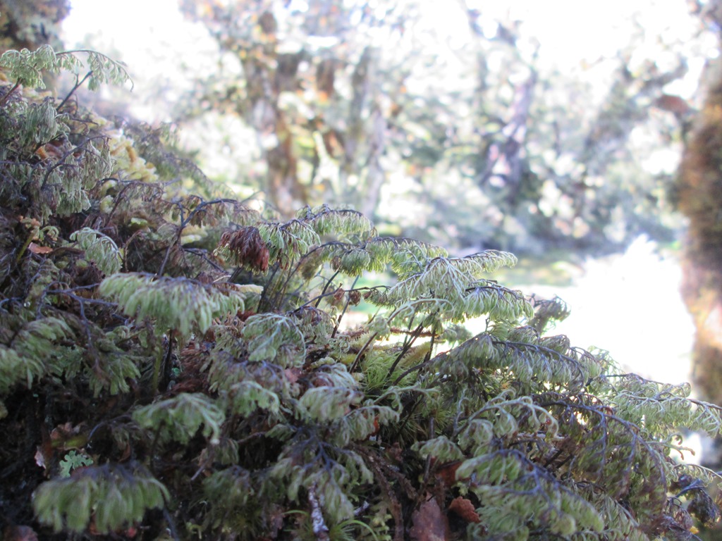 Auf dem Gipfel ist es recht feucht, einige Gebiete sind richtige Sümpfe, so dass man aufpassen muss, wohin man tritt. An anderen Stellen haben sich dicke Moosteppiche gebildet, die wunderschön in der Sonne glänzen. Schweren Herzens reiße ich mich von der Bergidylle los und hüpfe leichten Fußes wieder den Berg herunter.