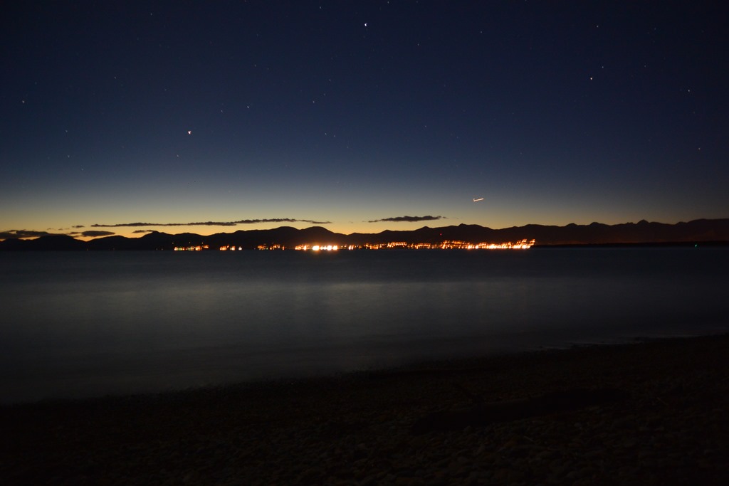 Abends blicken wir noch – dick eingehüllt in Winterklamotten – auf das nächtlich illuminierte Nelson auf der anderen Seite der Bucht und sehen auch das Ein oder Andere Flugzeug landen. Dabei bietet sich uns wieder ein grandioser Sternenhimmel.