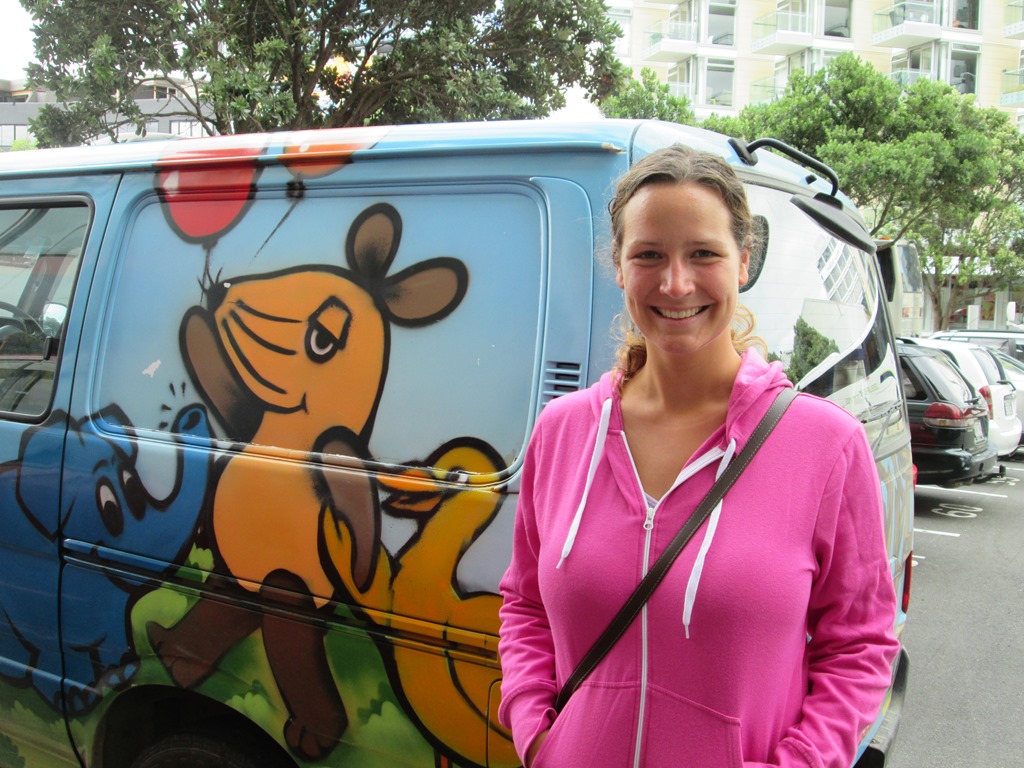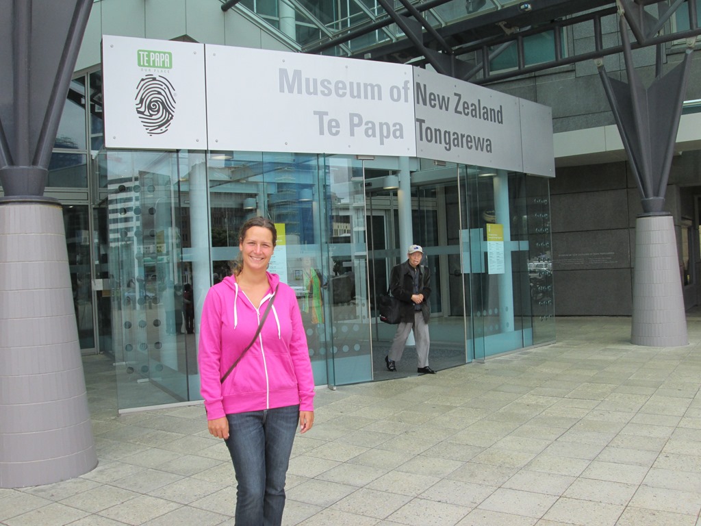 Am zweiten Tag haben wir uns dann das Nationalmuseum angeschaut, das Te Papa direkt am Hafen. Auf dem Weg dorthin haben wir DEN Camper für Conny gesehen! Bestimmt schon länger in deutscher Besitzerschaft Smiley. Das Te Papa selbst unterscheidet sich dann deutlich von Nationalmuseen, die man aus Europa so kennt. Hier gibt es zwar auch einige Informationen über Neuseeland selbst, insbesondere die Natur und die Tierwelt, aber die Geschichte beschränkt sich im Wesentlichen auf die letzten 150 Jahre. Toll aufbereitet und auch kindgerecht. Besonders appetitlich auch der Riesentintenfisch, der hier neben ganzen Walskeletten ausgestellt ist.