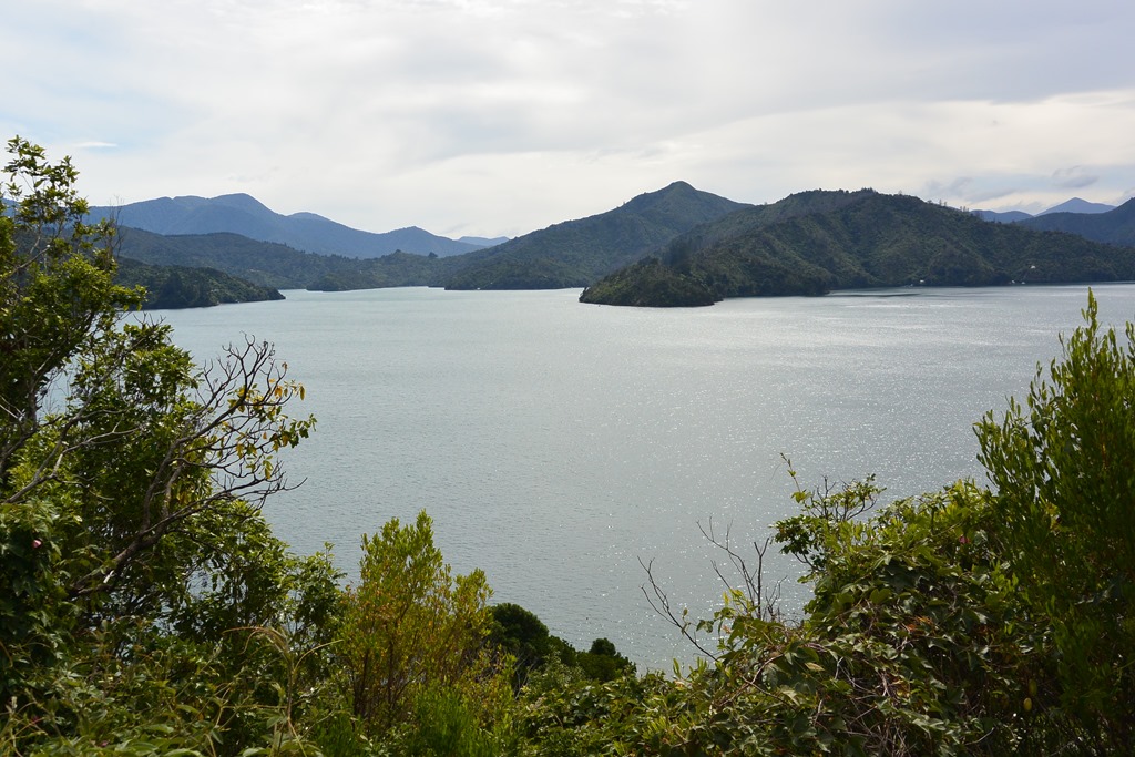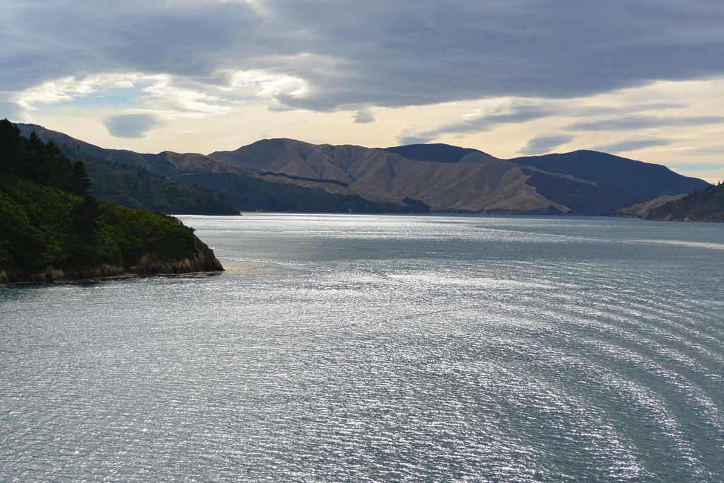 Ins Kino gehen wir aber nicht, sondern gönnen uns etwas zu trinken (Conny sagt es war der beste Kaffee ihres Lebens) und begeben uns danach nach draußen um ein wenig die Landschaft zu bewundern. Wir fahren nämlich schon recht fix durch die ersten Ausläufer der Südinsel, auch bekannt als Marlborouh Sounds.