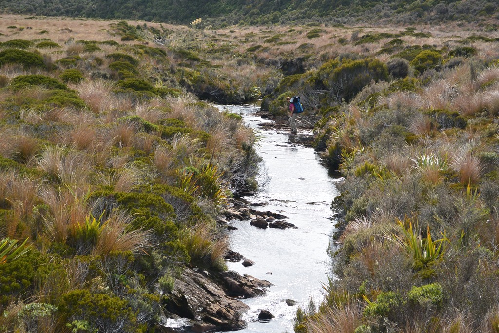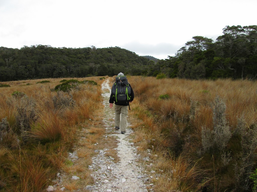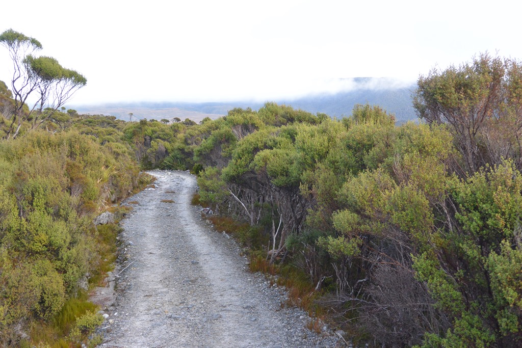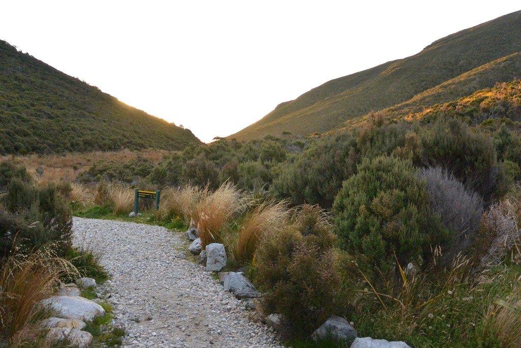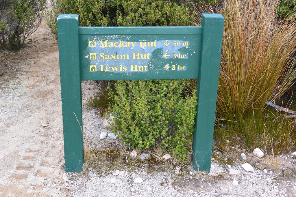 Von der Landschaft bekommen wir immer weniger mit und hoffen am Ende nur noch auf das Schild, das uns den letzten Kilometer vor der James Mackay Hütte anzeigt. Und der zieht sich dann. Gefühlte 5km später haben wir es aber geschafft.