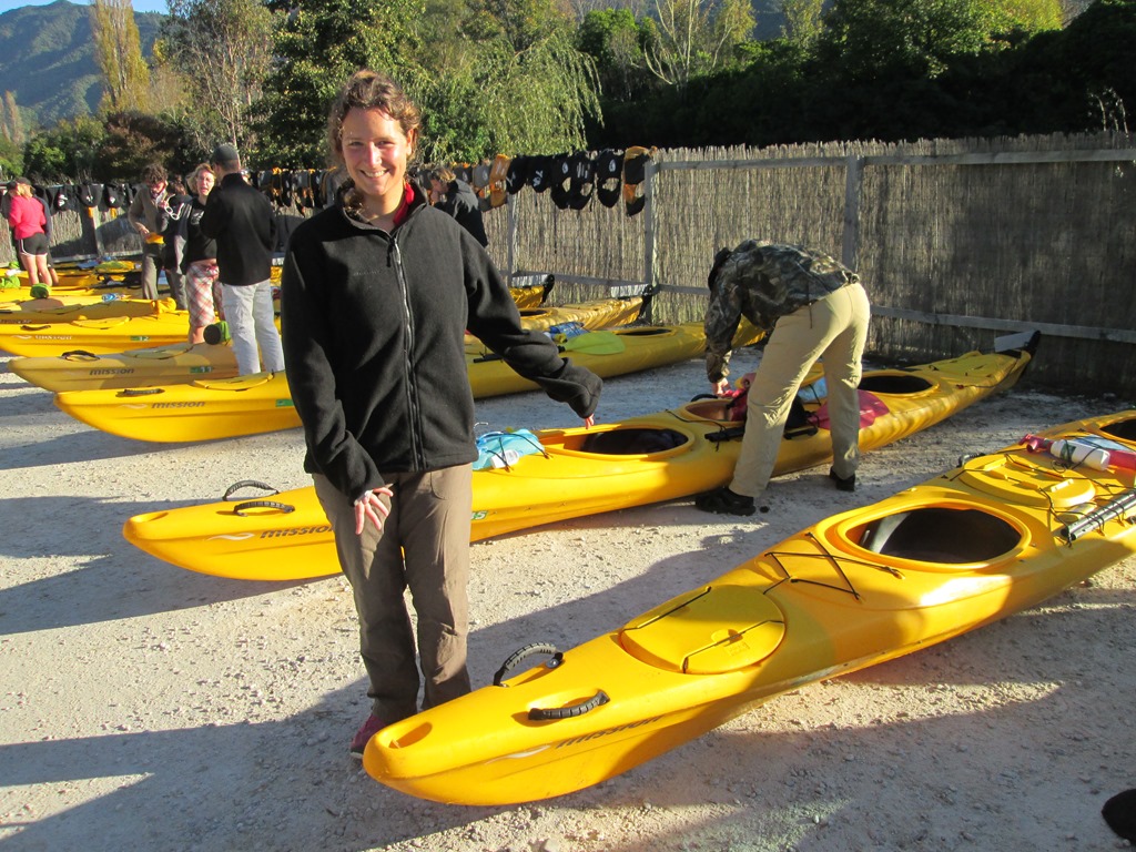 Nach kurzer Kayak-Einführung und etwas Wetter-Kunde schieben wir unser gelbes Bötchen ins eiskalte Wasser und paddeln los wie wild. Es ist morgens noch recht frisch, aber dank körperlicher Ertüchtigung und strahlendem Sonenschein ist uns bald angenehm warm.