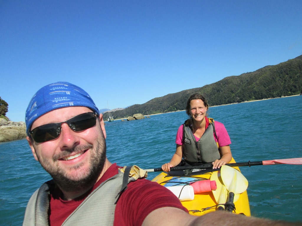 Arme Conny, die muss heute fahren, denn mein Fuß spielt nach meinem Umknicken in Wellington noch nicht wieder so mit. Nichtsdestotrotz buchen wir in Nelson bereits unser Programm für den Folgetag: Kayaken und Wandern. Oha, das wird anstrengend. Die Nacht verbringen wir auf dem bisher vielleicht schönsten Campground: “McKee Domain”. Direkt am Wasser gelegen, parken wir unseren Camper etwa 3m vom Strand. So haben wir uns das vorgestellt.