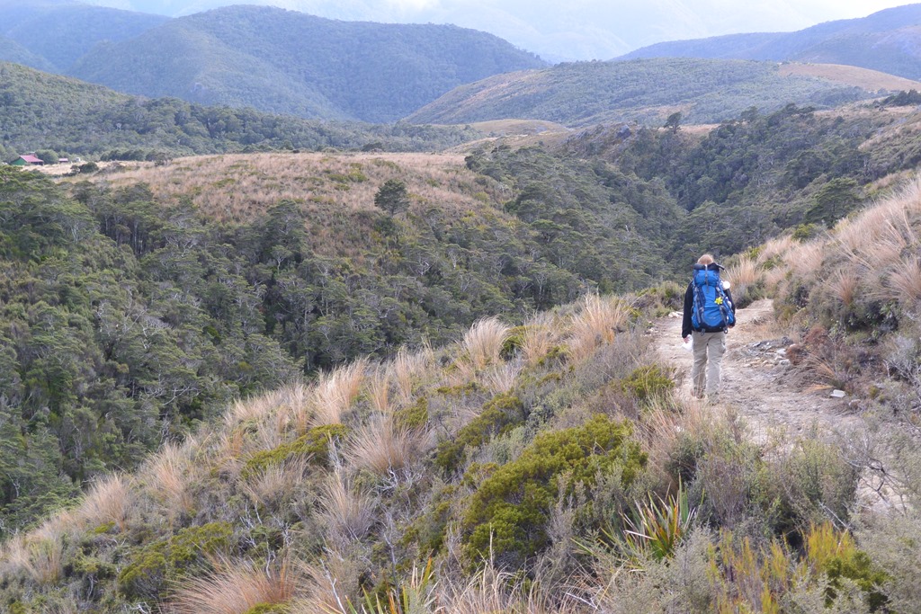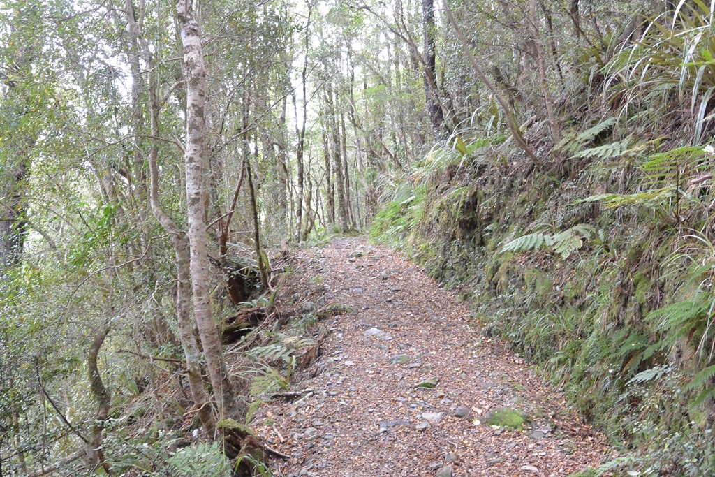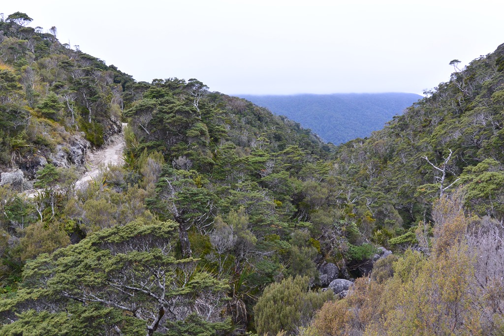 Der Track führt uns am ersten Tag stetig bergauf. Wir schrauben uns heute etwa 700m in die Höhe. Das ist aber alles nicht so richtig schlimm,denn die Steigung verteilt sich auf 17,8km. Wir arbeiten uns, anders als beim Tongariro Northern Crossing, durch viel Regenwald nach oben.
