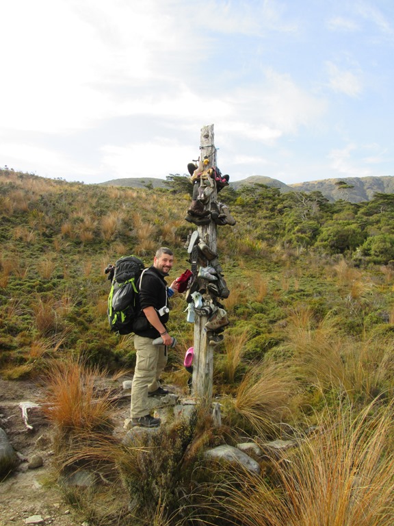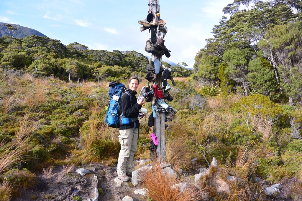 Und da kommt auch schon der weltbekannte Shoe Pole in Sicht. An diesem Holzpfahl werden wohl schon seit Jahren (Wander)Schuhe hinterlassen bzw. getauscht. Angesichts unserer drückenden Schuhen überlegen wir kurz, dort etwas mitgehen zu lassen, aber Highheels und Pantoffeln scheinen uns noch weniger angemessen. Dafür haben wir auf einem der Bilder den kleinen Maulwurf versteckt.