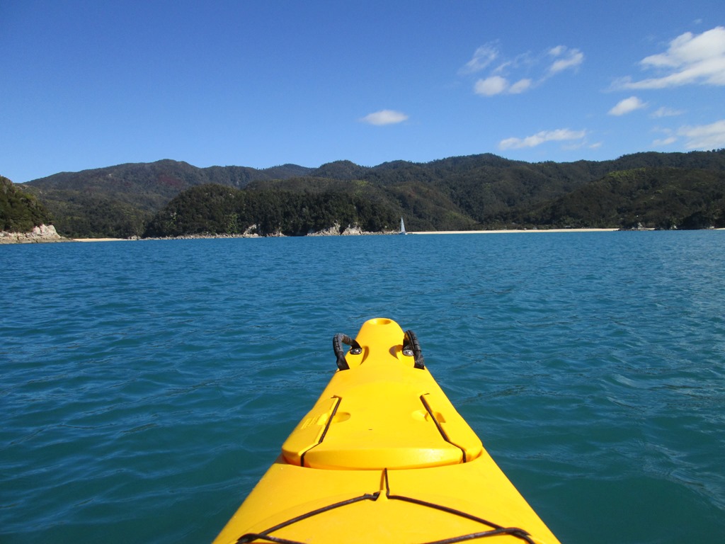 Dann hieß es ab in den Camper und ab gehts nach Marahau, das ist die Ortschaft am Rande des Abel Tasman Nationalparks. Wir haben uns dazu entschlossen, dort ein bisschen Kayak zu fahren und dann zurück zu wandern. Der Nationalpark liegt entlang der Nord-Küste der Südinsel und ist für seine Traumstrände berühmt.