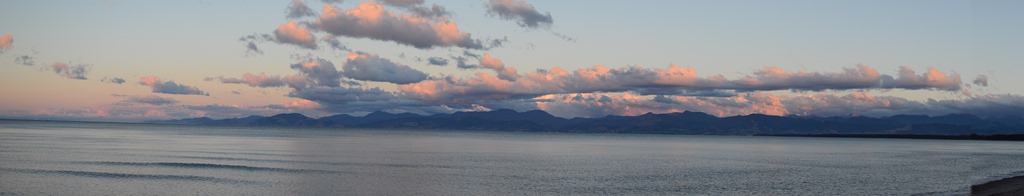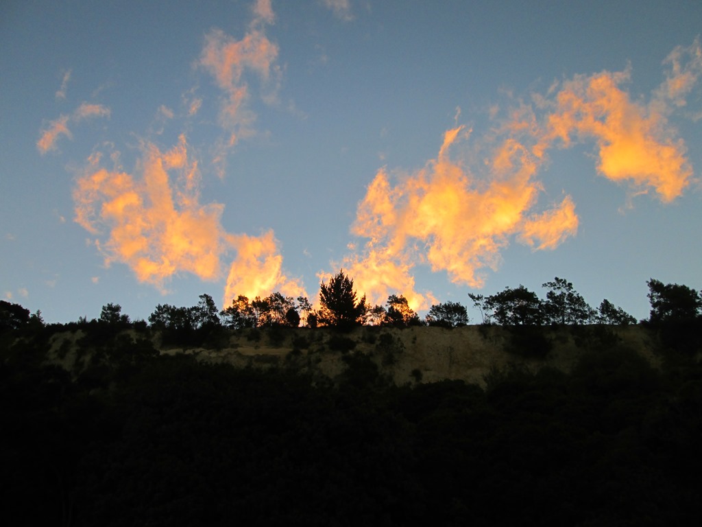 Sowohl an der Klippe hinter uns als auch über der Bucht vor uns, nahmen die Wölkchen Farben von Rosa bis Orange an. Ein sehr farbenfrohes Spektakel auf jeden Fall.