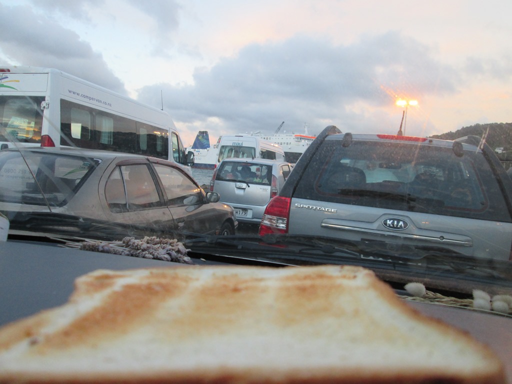 Heute geht es früh aus den Federn, denn um 8 Uhr müssen wir an der Fähre sein, die uns auf die Südinsel bringt. Die war auch schweineteuer und man kann die Fahrt auch nicht umbuchen. Durch den morgendlichen Berufsverkehr in Richtung Wellington verzögert sich unsere Ankunft ein wenig, was Conny ganz schön ins Schwitzen bringt. Klappt aber im Endeffekt alles und wir reihen uns pünktlich ein, um unseren kleinen Camper an Bord zu fahren.