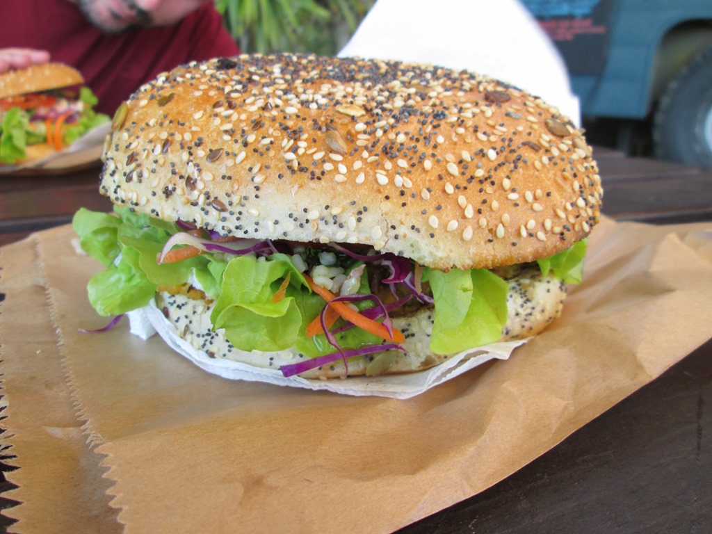 Zusätzlich zu viel Muskelkater hat Conny sich zudem zwei symmetrische Blasen an den Zeigefingern angerudert. Well done. Bei so viel körperlichem Leiden kann die Belohnung natürlich nicht lange auf sich warten lassen. Der Kayak-Laden verkauft richtig geile “Gourmet Burger”… super!