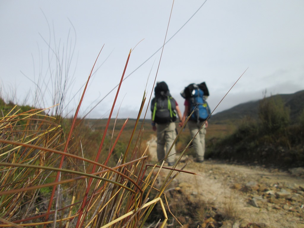 Nach kurzer Stärkung geht es durch die grasbewachsenen Hügel, durch die sich der Weg windet.