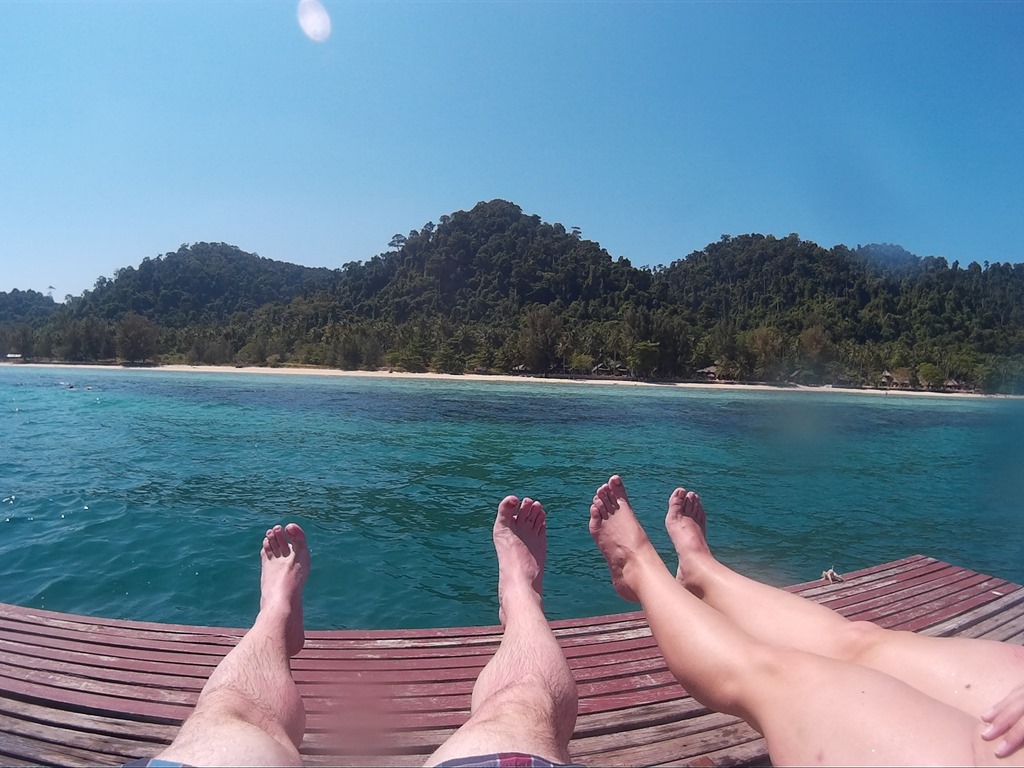 Die Insel selbst scheint nicht so richtig groß zu sein und es gibt auch nur einige wenige Resorts und keine Walking Street wie auf Koh Lipe. Alles sehr beschaulich und auch alles mit Holz und Bast und Bambus anstatt Zement.