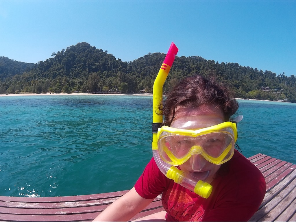 Von der Sandbank aus musste man nur einige Schwimmzüge machen, um ein Korallenriff zu erreichen, dass dem Strand vorgelagert ist und sich sensationell zum Schnorcheln eignet und einiges an Fischen und Seeigeln bot,- bei bester Sicht. Das Riff war deutlich intakter als die auf Koh Lipe,- allerdings nicht zu vergleichen mit dem Great Barrier Reef. Noch einige Schwimmzüge weiter Richtung offene See, dann erreicht man eine Plattform mit zwei Liegestühlen, auf denen man die Sonne und das Meer genießen konnte. Herrlich. Marcus war auf Koh Ngai auch tauchen, dazu gibt es jedoch einen eigenen Blogartikel.