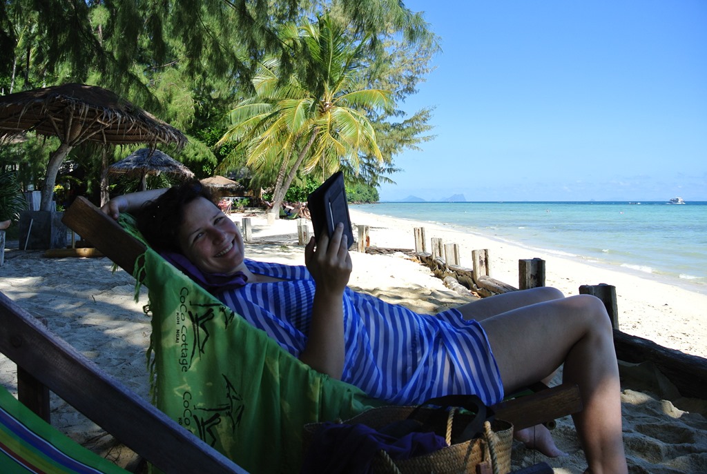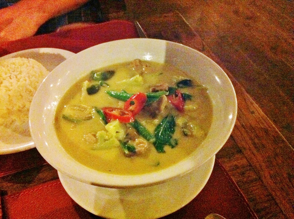 Zum Essen selbst können wir auch nur positives berichten. Neben klassischen Thai-Gerichten gab es eine eine Seite vegetarische Thai-Gerichte, eine Seite “Fusion”-Gerichte (z.B. Prawn-Burger) und natürlich auch Western Food, wenn man dann doch mal Hunger auf etwas bekannteres hat. Prinzipiell hätte man auch etwas weiter den Strand runter in anderen Restaurants essen können, – es spricht für die Küche im Coco Cottages dass wir dies nicht einmal in Anspruch genommen haben. Das Essen war einfach zu lecker. Mein Favorit war das vegetarische Red Curry, Marcus’ Favorit war das vegetarische Pad Thai. Das war umso überraschender, als dass wir bei unserem letzten Thailand-Besuch Pad-Thai so gar nichts abgewinnen konnten. Jetzt sind wir große Fans!