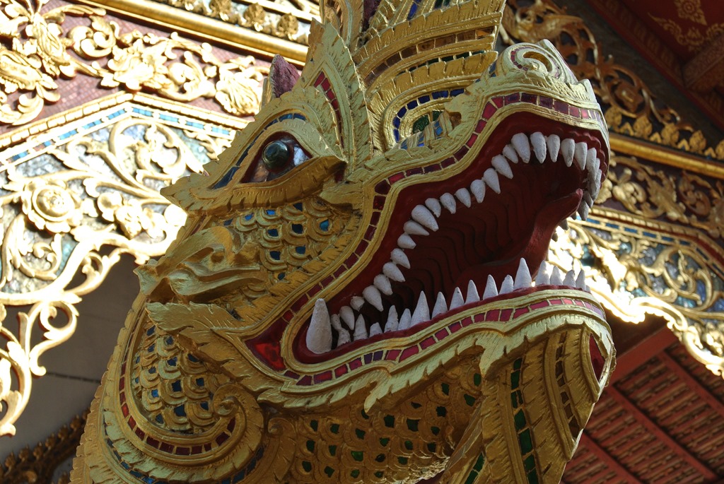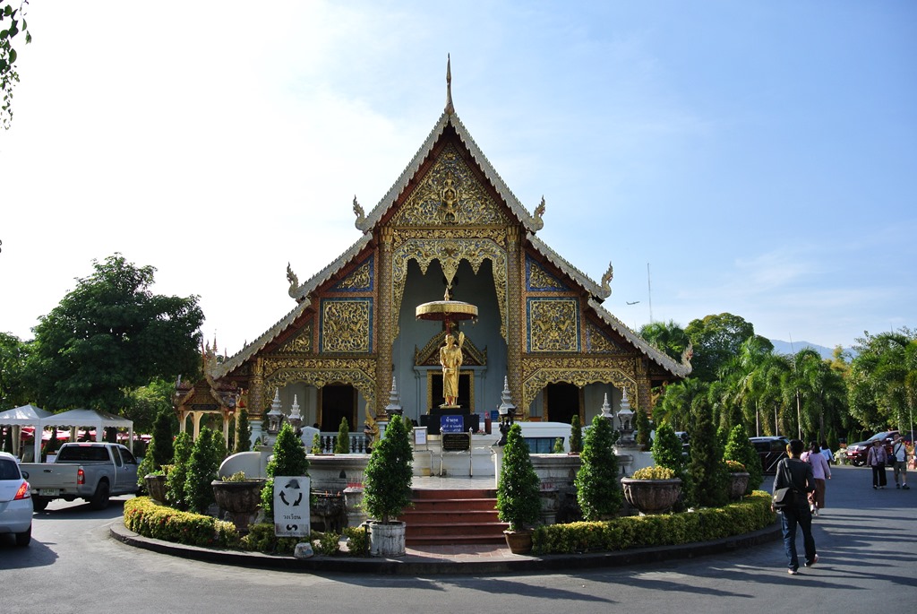 Die architektonisch schönsten Stellen sind in Chiang Mai die imposanten buddhistischen Tempel. Wir brauchen jetzt nicht jeden Tag den Besuch in einem Tempel, aber wenn es ein besonders schöner oder wichtiger Tempel ist, nehmen wir uns die Zeit und schauen ihn uns an. Dabei versuchen wir aber, keine Fotos von Buddha zu machen (das soll man nicht) und die Menschen natürlich beim beten nicht zu stören. In Chiang Mai haben wir uns im wesentlichen vier Tempel angeschaut.
