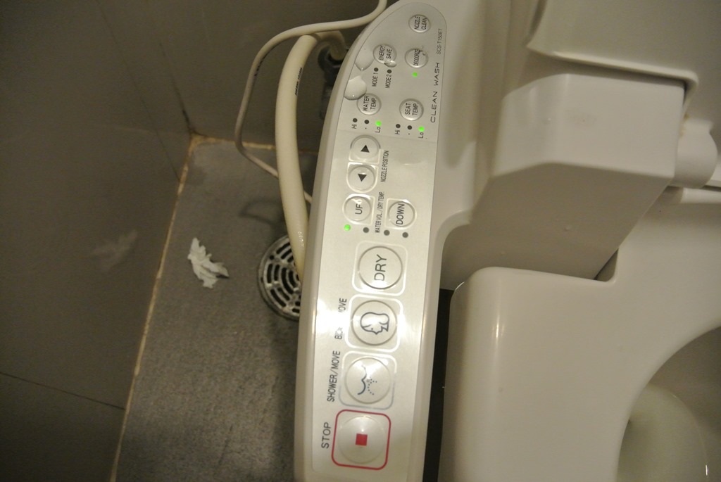 Unter großen Anstrengungen nehmen wir nochmal die Skytrain zur Sukhumvit und ich rette mich auf die öffentlichen Toiletten des Einkaufszentrums “Terminal 21”. Was soll ich sagen? Es war ein sehr nettes Klo-Erlebnis, denn das Klo war ein japanisches. Diese haben einen beheizten Klositzt, können Vogelgezwitscher spielen und hinterher mit Hochdruckreiniger und Fön auch alles wieder reinigen, bevor zuletzt noch Parfüm aufgetragen wird. Wahnsinn! Sowas brauche ich zuhause!