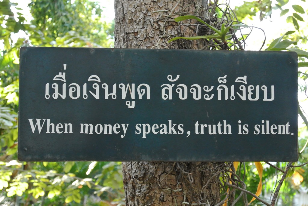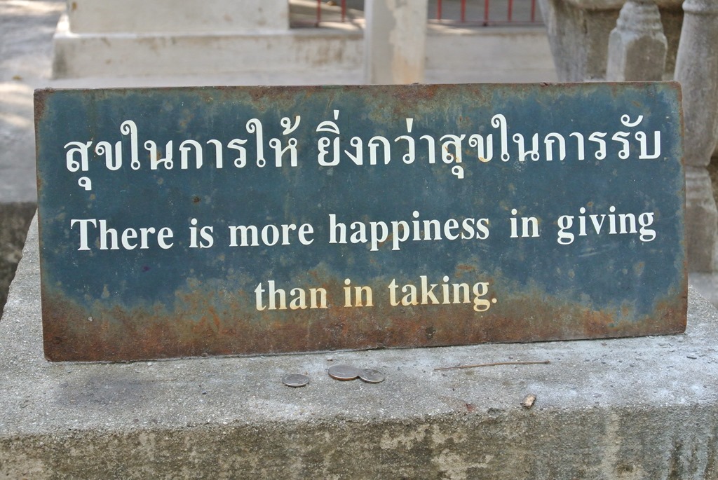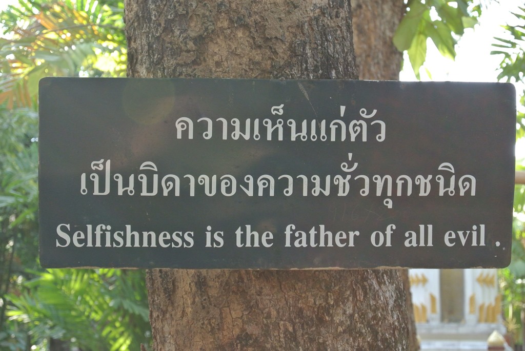 In den Garten des Tempels verirren sich schon weniger Leute, hier haben wir aber die meiste Zeit verbracht. Denn an sehr vielen Bäumen hängen dort weise Sprüche. So kann man schonmal eine Dreiviertelstunde durch den Garten irren, um auch ja alle Schilder zu erwischen. Ein paar haben wir mal fotografiert.