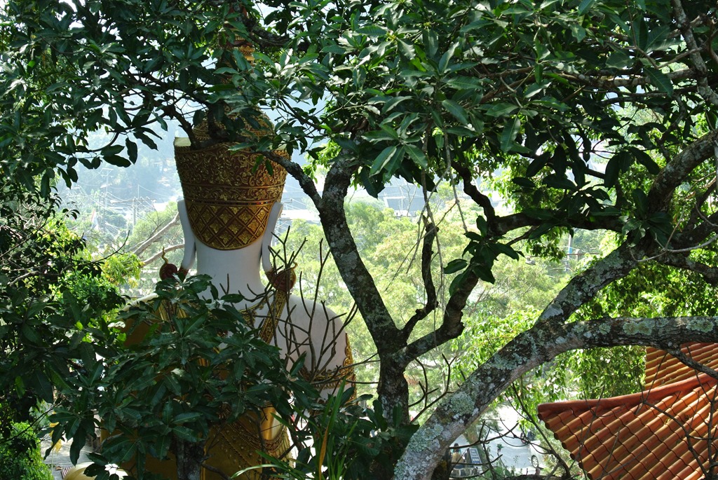 Da man hier mit über 1600m relativ hoch ist, bietet sich einem normalerweise eine phänomenale Aussicht auf die umliegende Umgebung samt Chiang Mai City. Leider haben wir einen diesigen Tag erwischt und so können wir die Landschaft und die Stadt nur im Nebel erahnen.