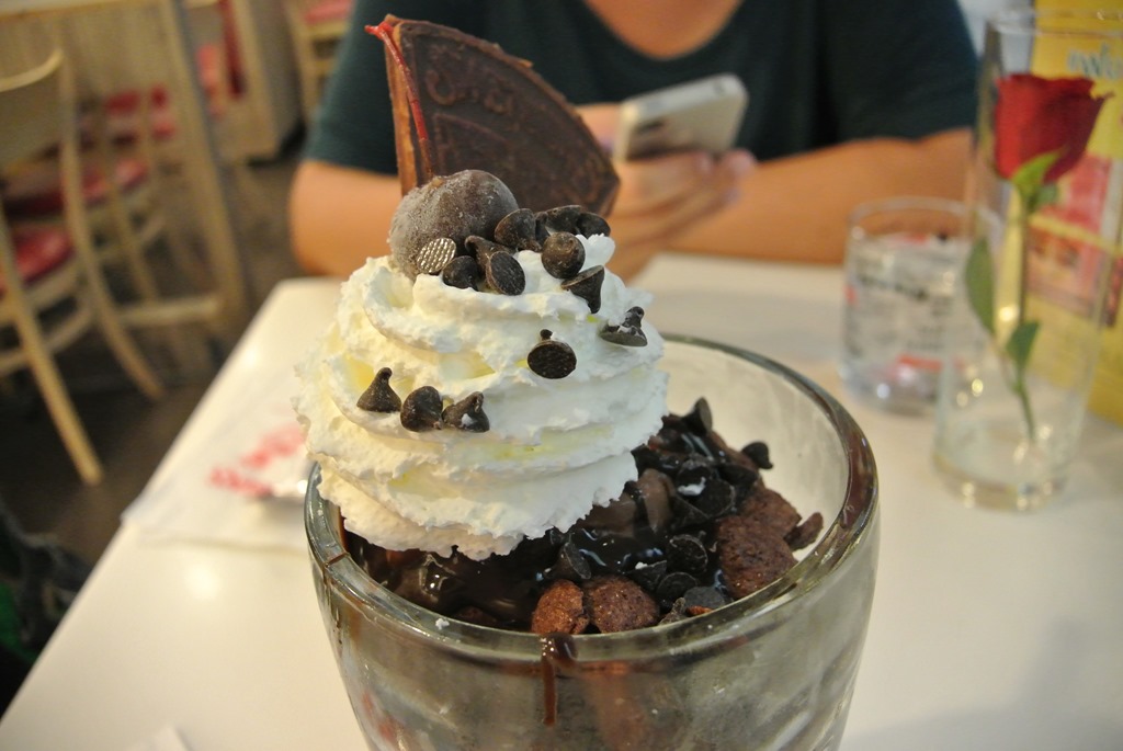 Ein paar Google-Suchen später sitzen wir im Chu Chocolate mitten in Bangkok. Wir wollten uns nicht irgendwo was im Supermarkt kaufen, sondern mal richtig lecker frühstücken und dafür soll das Chu Chocolate sehr geeinget sein. Wir suchen uns einen Tisch und durchwühlen die Karte.