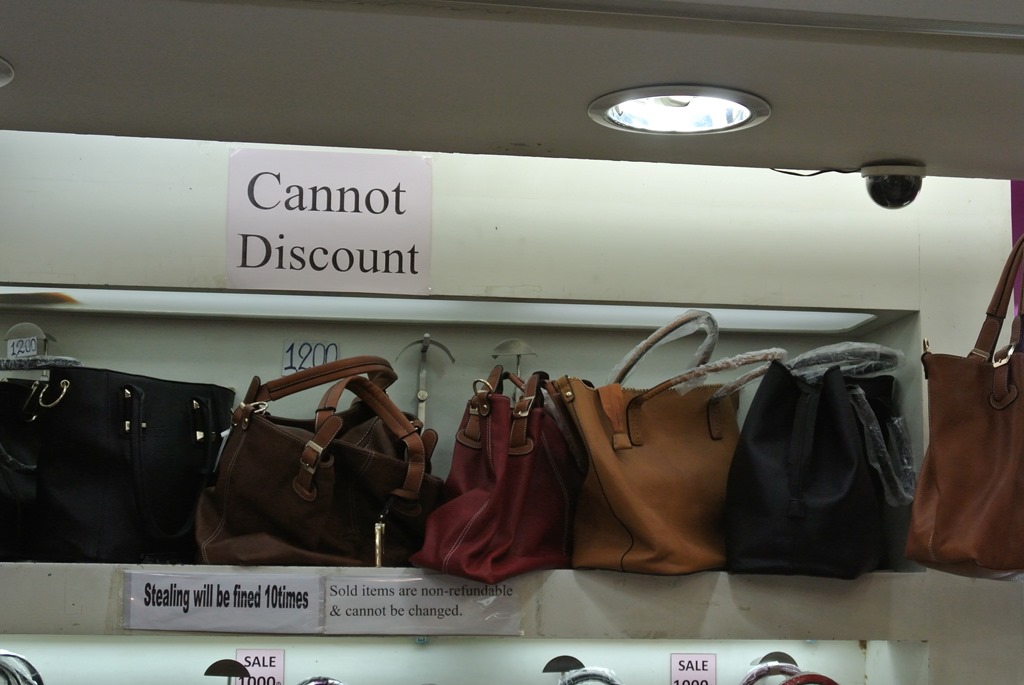 Wir sind direkt in den ersten Stock, dort gibt es Kleidung und Gepäckstücke, denn wir brauchten noch ein zusätzliches Gepäckstück für die Kleidungsstücke, die wir uns haben schneidern lassen. Die passen nicht mehr in den Rucksack.