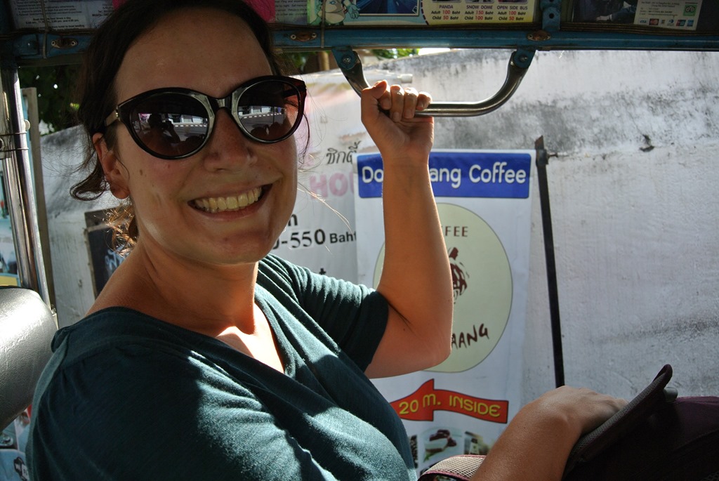 Einer der zentralen Sehenswürdigkeiten in Chiang Mai ist der Tempel Doi Suthep. Er liegt auf einem kleinen Berg und man benötigt etwa eine Stunde Fart mit dem Songthaew. Ein Songthaew ist übrigens eine Art Taxi, dass ausschaut wie ein Pickup mit zwei Bänken und Überdachung auf der Ladefläche.