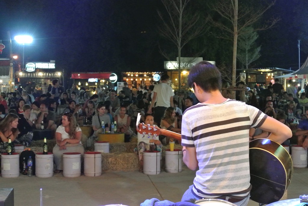 Der findet jeden Tag außer Sonntags statt und hat sich auf Essen und Trinken spezialisiert. Nebenbei gibt es noch den ein oder anderen Live-Act, der die Besucher mit westlicher Musik unterhält. Auch die Stände sind eher westlich orientiert, so gibt es neben diversesten Nudel-Läden beispielsweise auch einen Laden für Glühwein. Bei 30 Grad. Na schönen Dank auch.