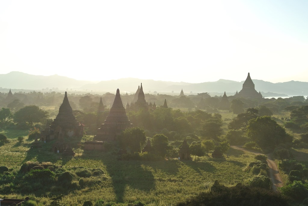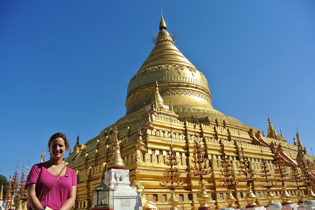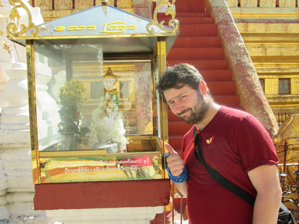 Während sich die Locals vor der Pagode fotografierten, haben wir uns lieber vor der Landschaft fotografiert und skeptische Blicke der Burmesen geerntet.