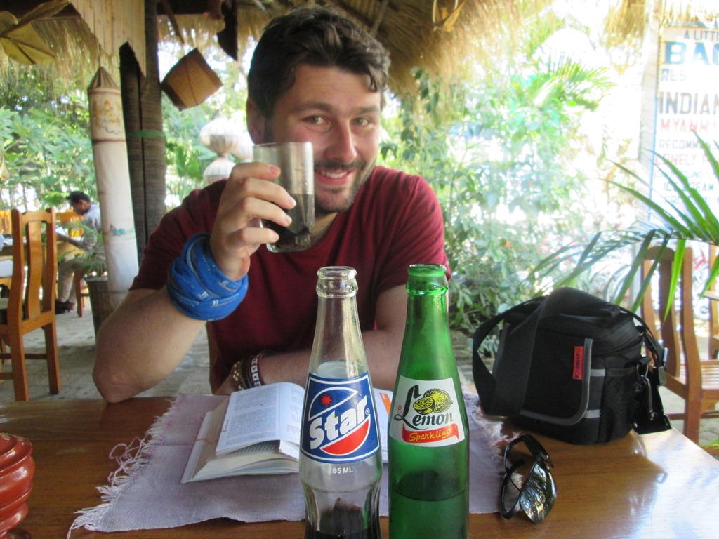 Und schwups, da war auch schon der letzte Tag in Mandalay da. Wieder machen wir uns erst gegen Mittag auf den Weg und diesmal haben wir uns Fahrräder geliehen. Wir sind die letzten Tage über 20km gelaufen und jetzt reichts aber auch. Der erste Stop ist Marie Min, ein indisches Vegetarierrestaurant, das wir auschecken wollten um abends dort zu essen. Ein Getränk zur Erfrischung und weiter gings.