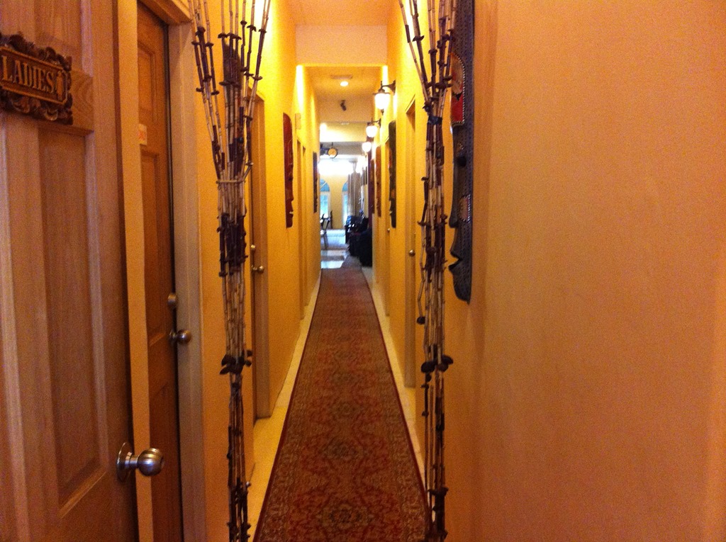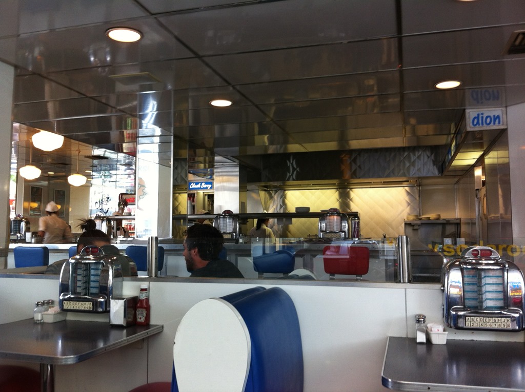 Wir haben das Essen richtig genossen, doch oh weh! Marcus Käseburger mit Käsefritten schienen nach dem leichten asiatischen Essen der letzten Monate doch etwas viel zu sein. Er hatte sich richtig schön überfressen und saß mit Magendrücken und Völlegfühl am Tisch. Aber der kleine Verdauungsspaziergang zum Hostel macht alles wieder gut. Zum Abschied noch ein Blick auf den Eingang dieses genialen Diners und ab zurück.