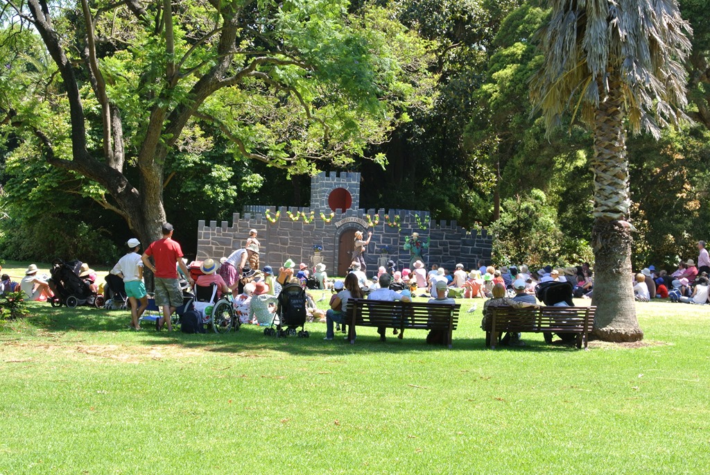Conny ist ja ein großer Fan von Parks und Gärten aller Art und so auch hier, die Botanical Gardens sind aber auch überdurchschnittlich hübsch, das muss selbst ich als Naturmuffel feststellen. Auf einer Lichtung stoßen wir sogar auf ein Theaterstück, das gerade aufgeführt wurde. Schien für Kinder gewesen zu sein, war nämlich laut und bunt und witzig. Shakespeare’s Sommernachtstraum wird auch diese Woche noch aufgeführt, vielleicht schauen wir uns das mal an. Weiter schlendern wir durch den Park und stoßen dann auf ein großes, graues Gebäude.