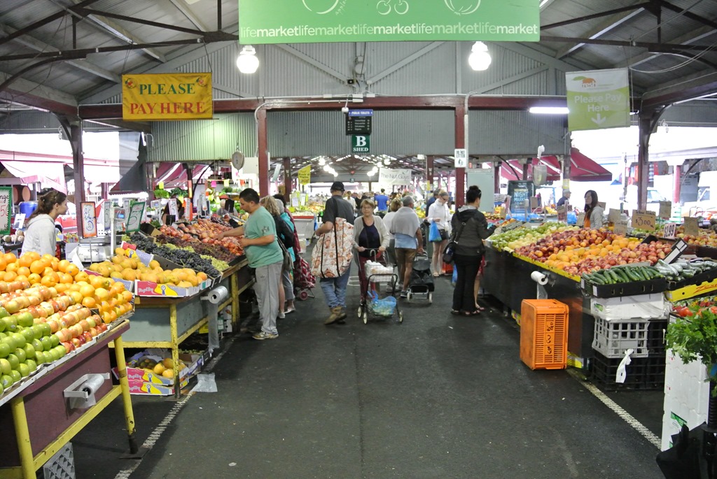 Hier genießen wir kurz ein bisschen Wasser, Obst und gratis WLAN bevor es weitergeht. Nächste Ziel sind die Queen Victoria Markets. Eigentlich DIE Markthalle für Lebensmittel, Kleidung und sonst auch alles was man so benötigt. Wir stehen aber vor leeren Gängen, denn wir sind ein bisschen spät dran, der Markt hat seit etwa einer Stunde geschlossen. Naja, müssen wir halt die Tage nochmal schauen.