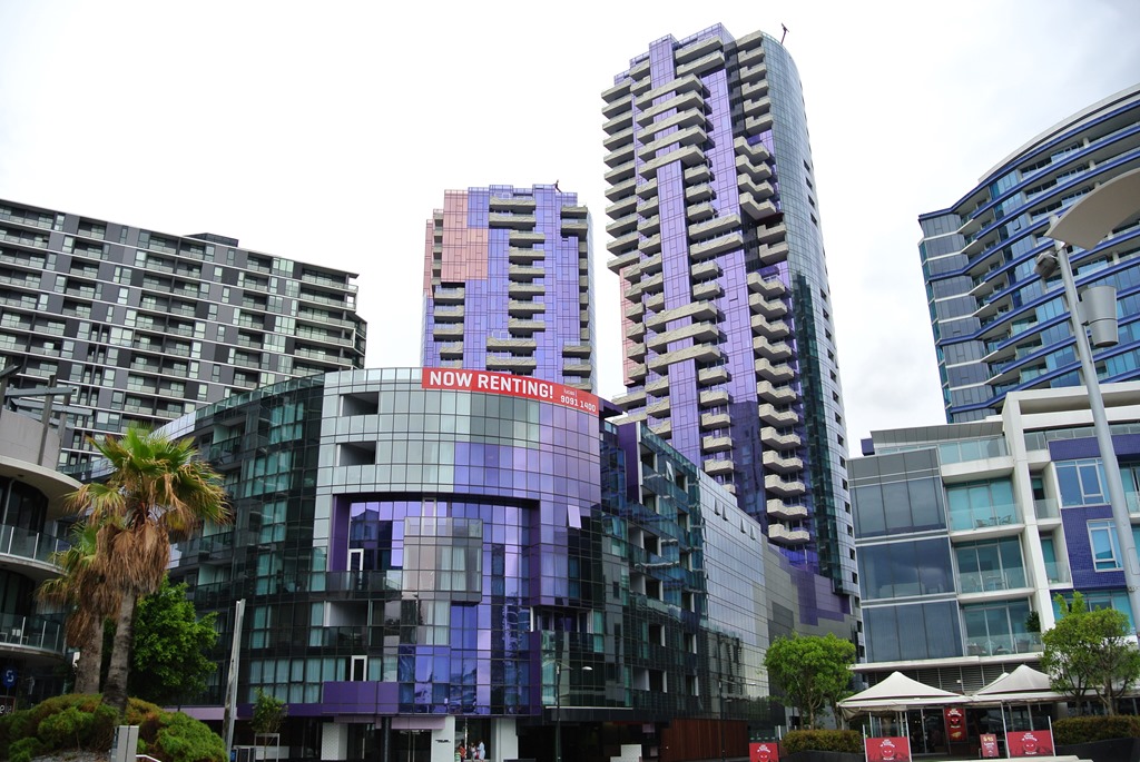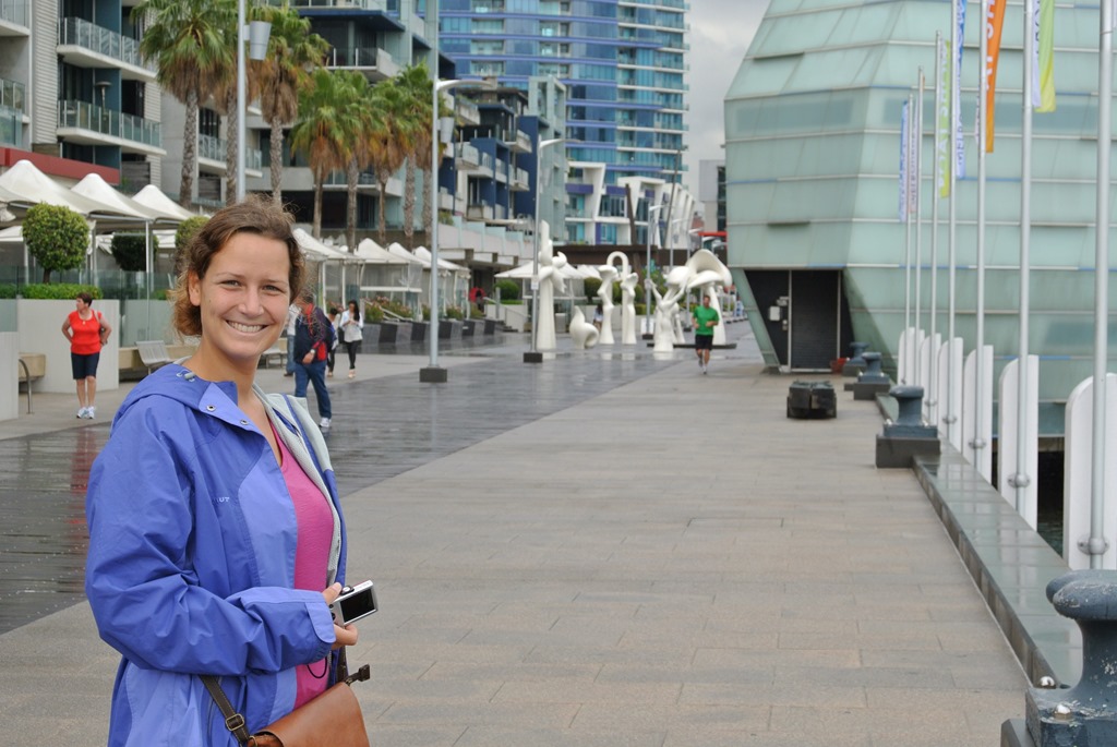 Eine Stunde später hüpfen wir wieder in den Bus und fahren ein paar Stopps weiter zu den Docklands, also zum Hafenviertel. Dort finden wir neben der “Harbour Town” (=Shopping Meile) auch den Melbourne Star (=Riesenrad) und das Etihad Stadium (=Fußballstadion).