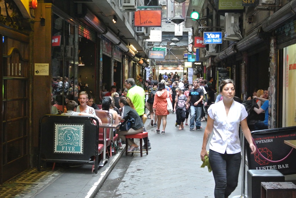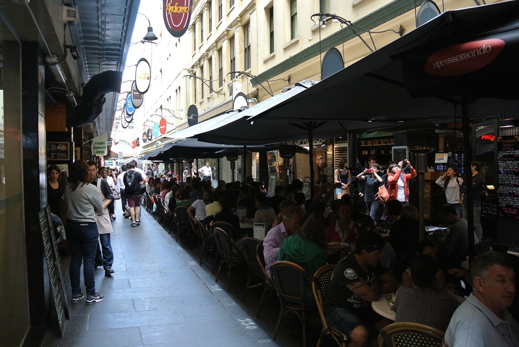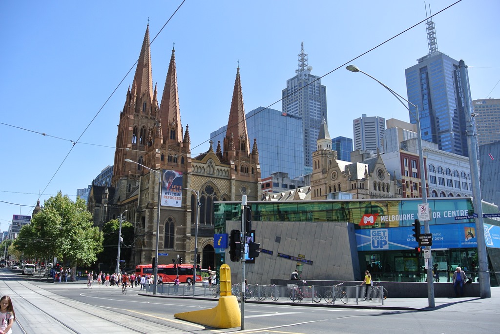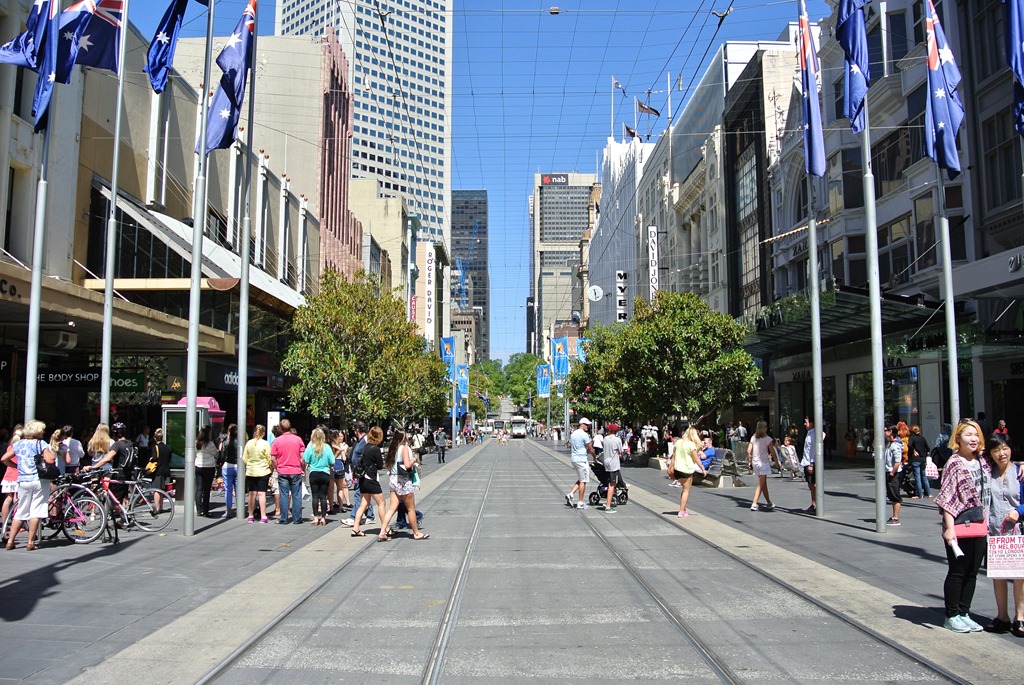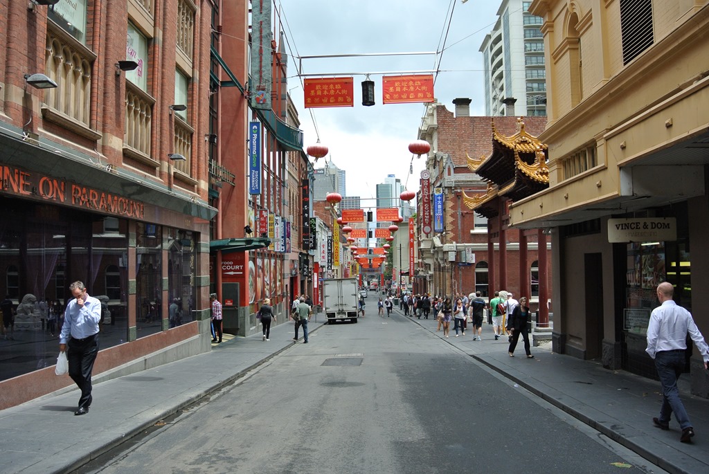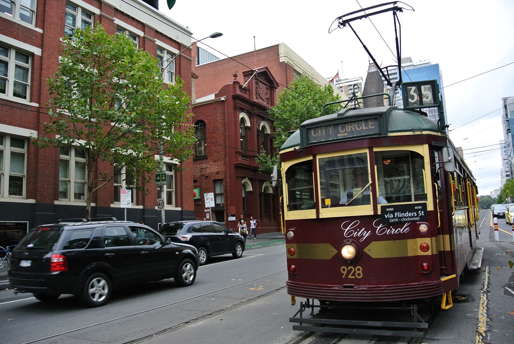 Chinatown haben wir dann eher schnell durchquert, wir hatten ja schon das echte China, sowie Chinatown in Bangkok, Georgetown und Kuala Lumpur. Hier in Melbourne beschränkt sich Chinatown dann auch praktischerweise auf ein paar schicke, verwestlichten China-Restaurants und das war es dann eigentlich auch schon. Chinesisches Essen wollte wir allerdings nicht, bei uns gab es zwischendurch dann eher ein kleines Sandwich. Während wir dies konsumieren, fassen wir den Plan, noch die Circle Line-Straßenbahn auszuprobieren. Die ist alt, umsonst und fährt immer die Runde um Melbournes Innenstadt. Das klingt gut.