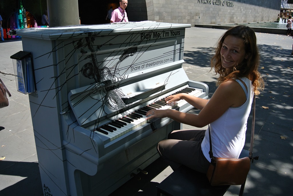 Auf dem Weg sind wir wieder an der National Gallery of Victoria vorbei gekommen, dort steht, wie an einigen Stellen in Melbourne, ein Klavier herum, an dem man einfach spielen darf. Das hat Conny dann auch mal gemacht. Es gab Beethoven.