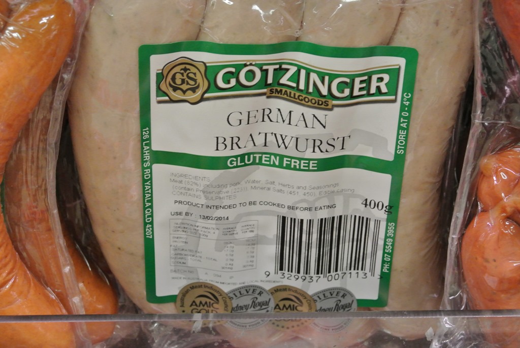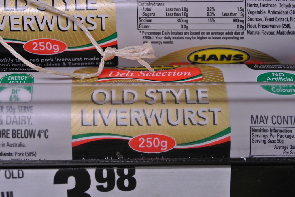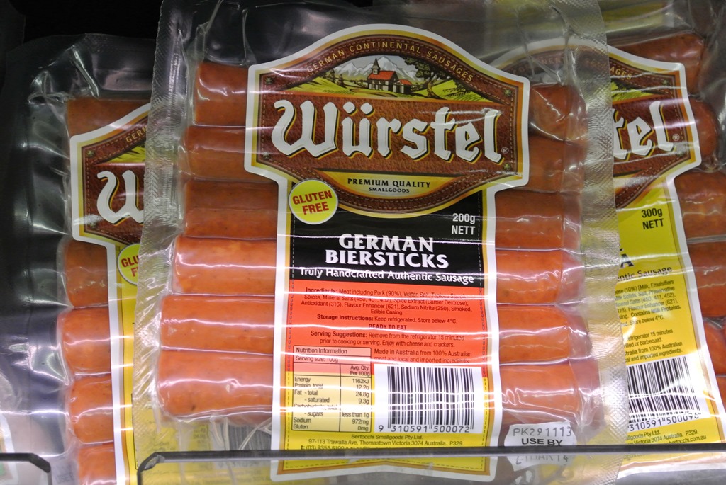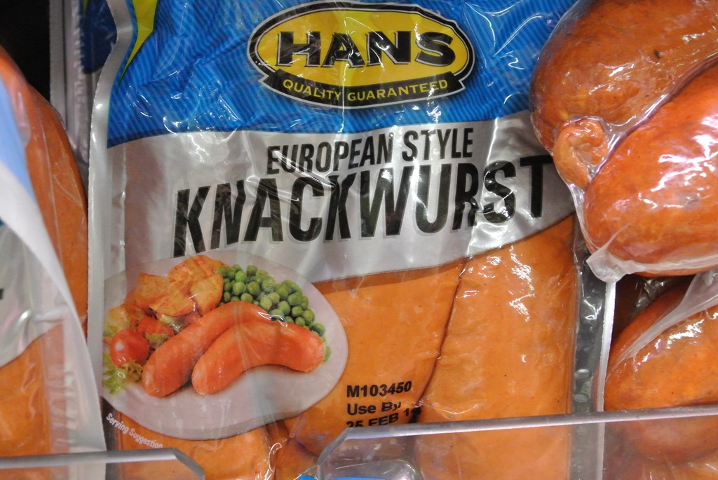 Nach den Pommes, schlendern wir weiter durch die Stadt und verirren uns schließlich das erste mal in einen richtigen australischen Supermarkt. Bisher hatten wir immer nur kleine Märkte gesehen, die für unsere Verpflegung zwar ausreichen, aber kein richtig großes Sortiment vorhalten. Anders hier. Wir stöbern mal ein wenig und stoßen auf viele interessante Dinge, zum Beispiel Deutsche Wurst.
