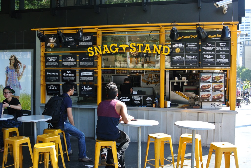 Auf dem Rückweg finden wir noch einen witzigen Snack-Stand in der Innenstadt. Achtet mal auf der linken Seite des Standes auf die Speisekarte. Knapp über dem Kopf des asiatisch aussehenden Kollegen.