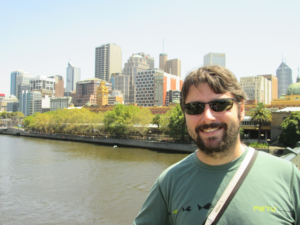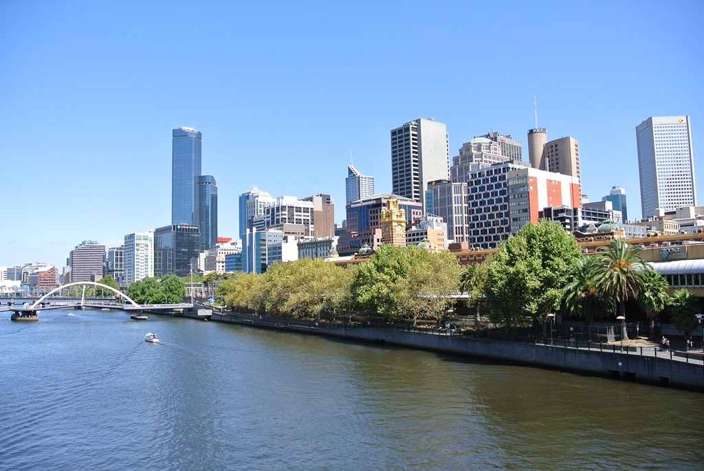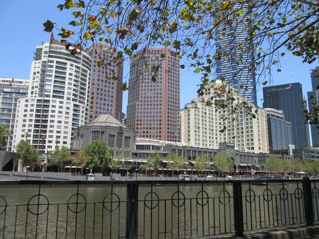 Weiter Richtung Innenstadt kommen wir als nächstes an den Yarra River, dessen Promenade ich gestern bereits mit London verglichen habe. Die fanden wir auch erneut so cool, dass wir uns dazu entschlossen, uns kurz etwas zu Essen zu suchen und uns dort ein wenig hinzusetzen.
