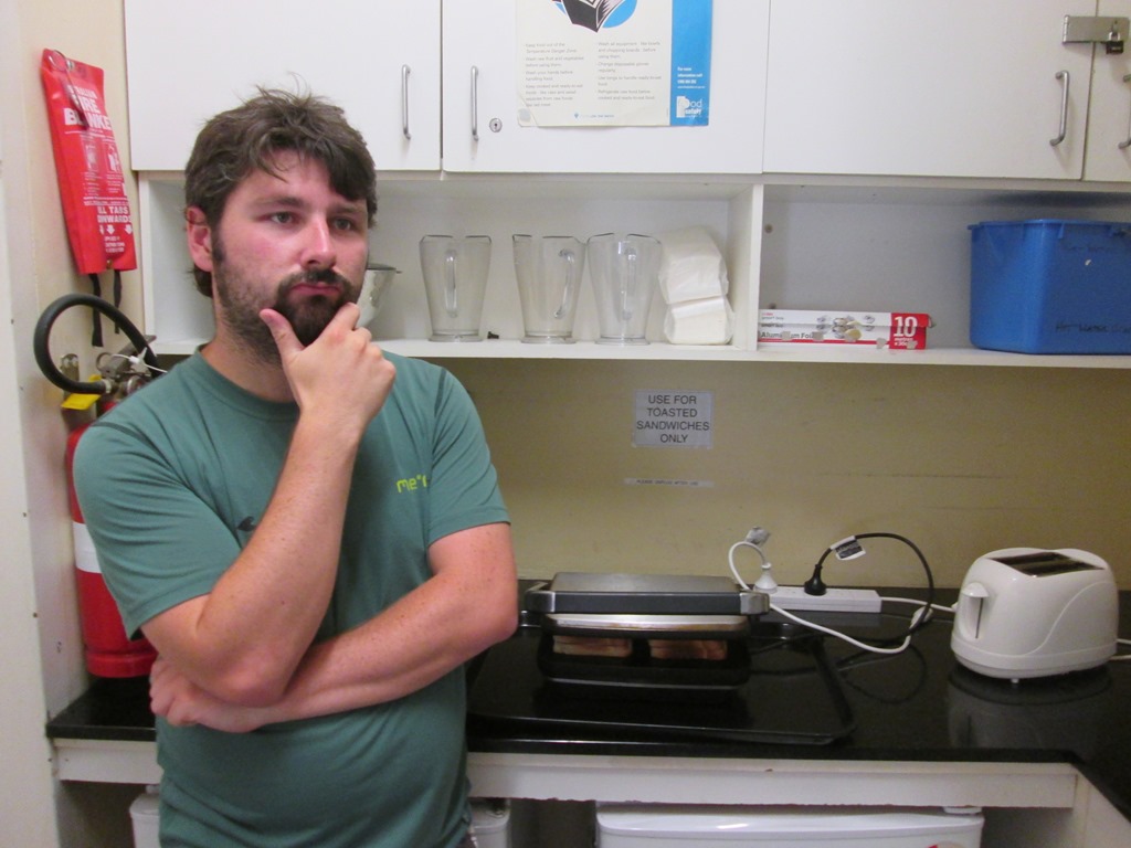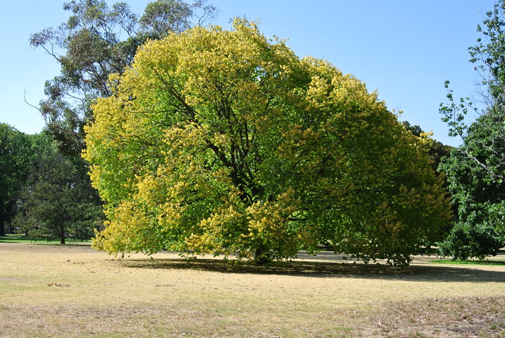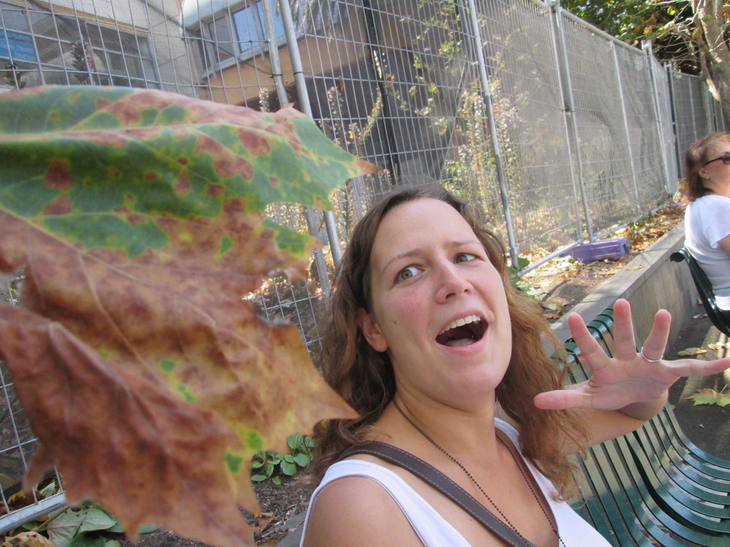 Könnte ja was giftiges sein, wir sind ja immerhin in Australien. War es aber nicht. War nur ein Blatt, dass langsam auf sie herabgesegelt ist. Hier sieht es tatsächlich schon ein wenig herbstlich aus, weil viele Blätter ob der letzten Hitzewelle mit mehr als 40 Grad ihre Spuren hinterlassen hat.