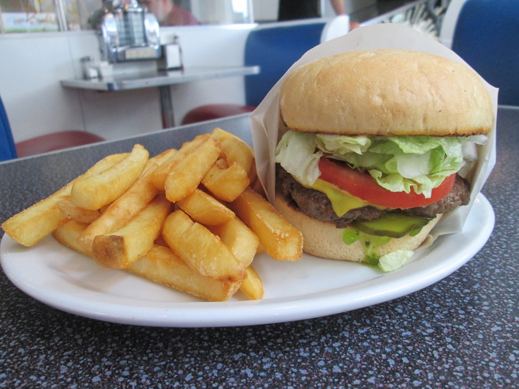 Auch die Burger waren überragend gut. Connys mit Gurke und Salat und Tomate, meiner mit doppelt Fleisch und doppelt Käse. Das waren mit die besten Burger die wir jemals gegessen haben. Warum haben wir so einen coolen Diner nicht in Deutschland?!