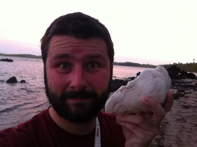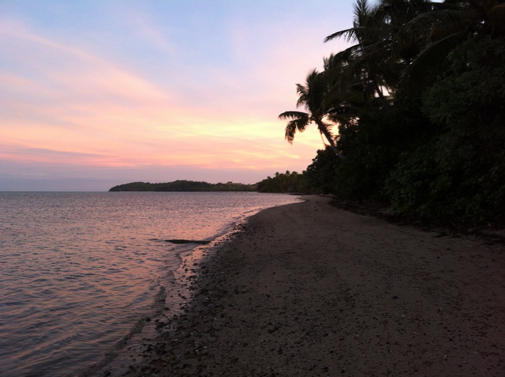 Als diese weg ist, mache ich mich auf den Weg, den höchsten Berg der insel zu besteigen und von dort den Sonnenuntergang zu sehen. Zumindest den Anfang davon. Ich finde eine dicke fette Muschel auf dem Weg und verlaufe mich direkt einmal. Ein kleiner Fidschi-Junge hilft mir zurück auf den Weg, ich bedanke mich per Fistbump. Absolut bemerkenswert ist, dass der kleine nahezu perfektes Englisch spricht!