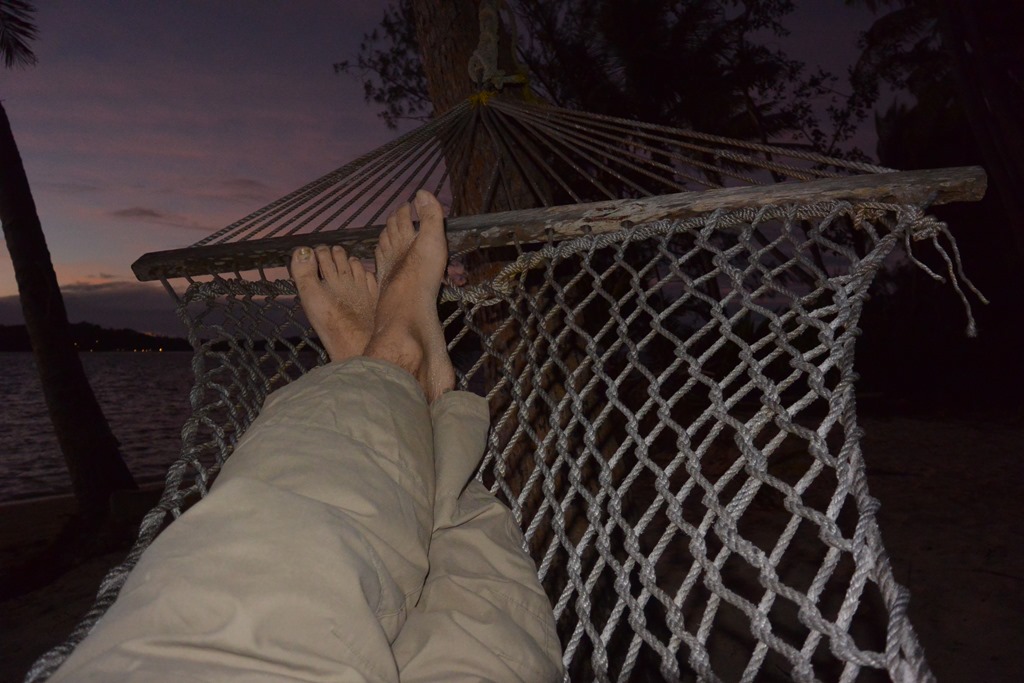 Ich gönne mir viel Zeit in der Hängematte, unterbrochen vom Abendessen und von einem soliden Sonnenuntergang. Ich gehe früh ins Bett, morgen will ich zum Sonnenaufgang unterwegs sein.