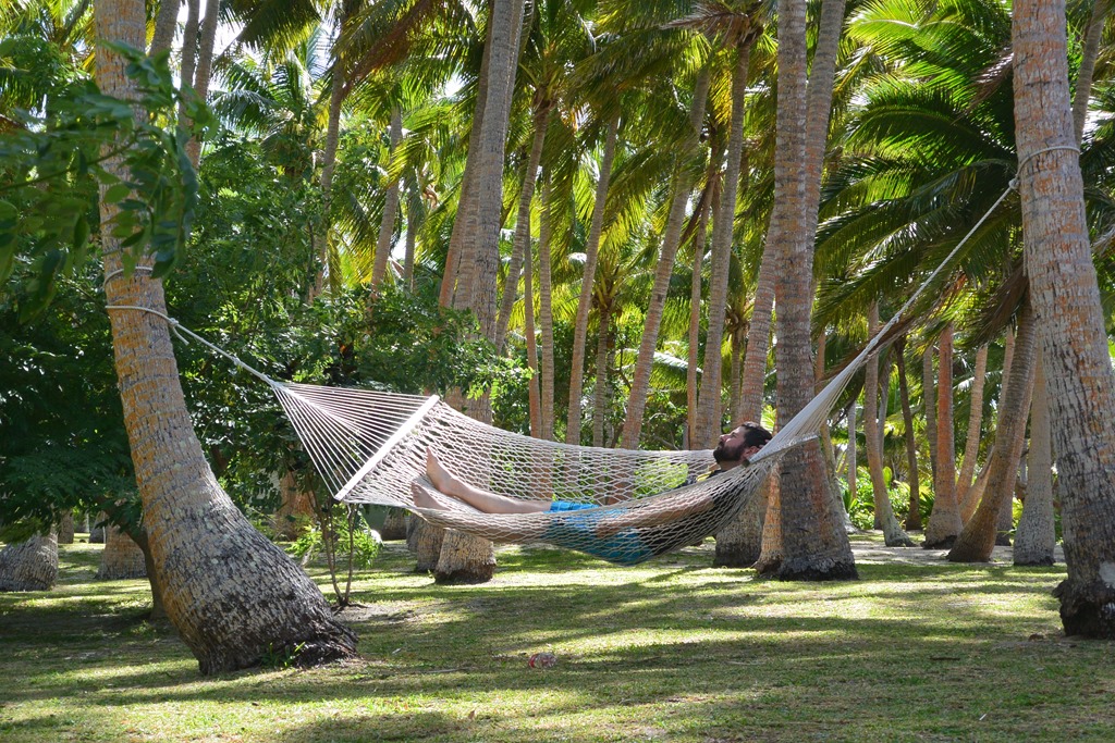 Ich schlafe am letzten Insel-Tag etwas länger und checke nach dem Frühstück aus. Danach ruft wieder meine Hängematte. Ich habe in 7 Monaten Weltreise ein Buch beendet, dann noch eins in Nadi und jetzt noch ein weiteres. Herrlich.