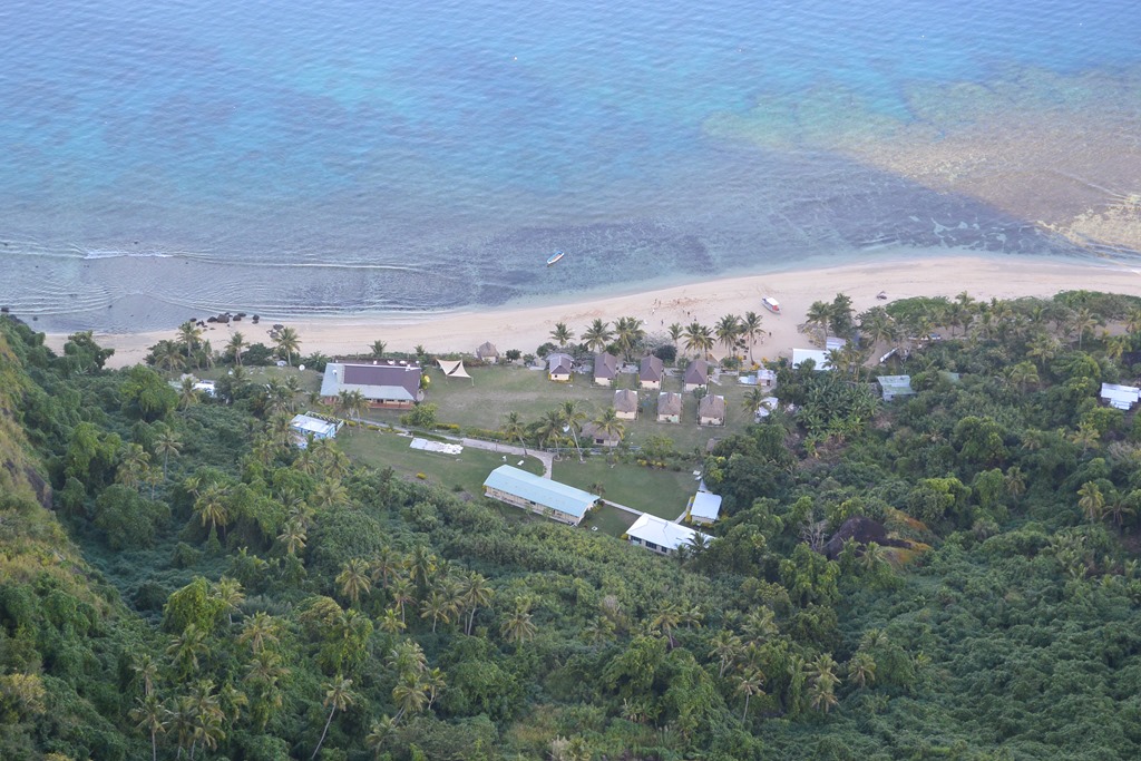 Ich laufe im Sprint den Berg hoch, man gönnt sich ja sonst keinen Sport. Oben treffe ich eine Gruppe Spanier, den den Berg mit lauter RnB-Musik beschallen. Soviel zum Thema Ruhe und Frieden also. Ich will mich nicht lange rumärgern, mache ein paar Fotos und begebe mich direkt auf den Rückweg. Die Gruppe auf dem Berg kommt übrigens vom zweiten Resort auf der Insel, “Coral View”, eines der größten hier auf Fidschi. Nicht so mein Ding.